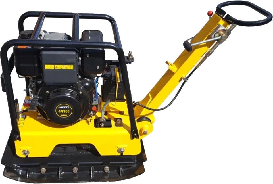 Pladevibrator til indkørsel og belægningsarbejde. Maskinen kan køre fremad og bakke.